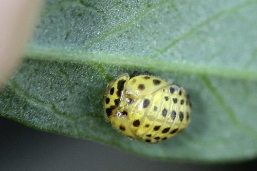 La tête est bien visisble.De plus, on voit se dessiner la partie supérieure des élytres.